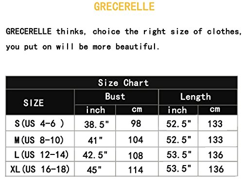 *Size Chart: *S (US 4-6) Bust:98 cm/38.5"" ; Length: 133cm/52.5"" *M (US 8-10) Bust: 104cm /41"";Length:133cm/52.5"" *L (US 12-14)Bust:108 cm/42.5""; Length:136cm/53.5"" *XL (US 16-18)Bust: 114cm/45""; Length:136cm/53.5"" *There is 2-3CM difference according to manual measurement.