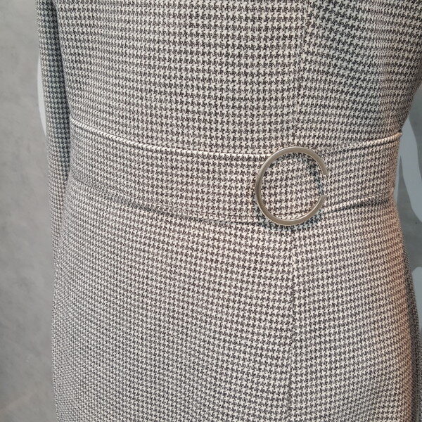 모던하고 클린한 실루엣에 메탈 디테일 포인트의 포멀한 H라인 원피스입니다