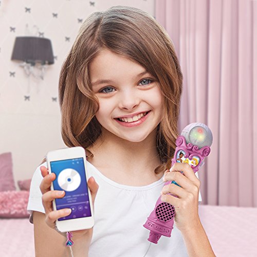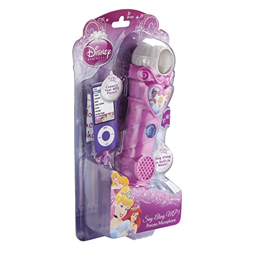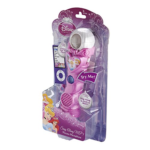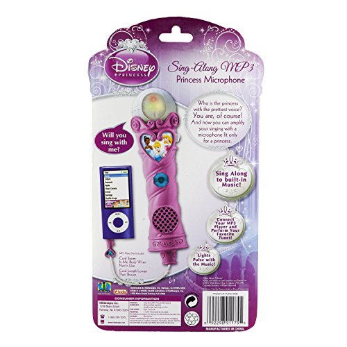The Disney Princess Sing-Along MP3 Princess Microphone is here!! The real working mic with built in speaker allows you to sing like the princess you are and become a star! Sing along to built in music or plug the mic into your MP3 and sing to whatever you like. The lights will flash to music so you will light up the stage. The line in cord stores neatly inside the mic so you can sing anywhere you like. The Disney Princess graphics lets you sing with your favorite characters by your side. This will make the perfect gift or birthday present for your little princess!