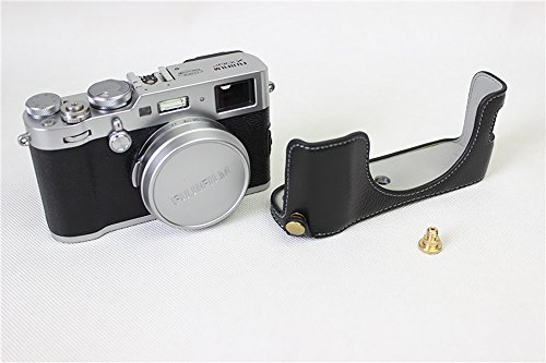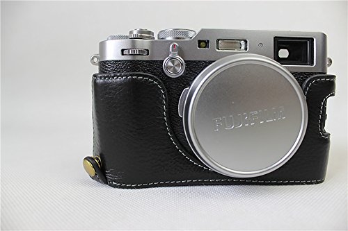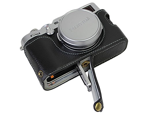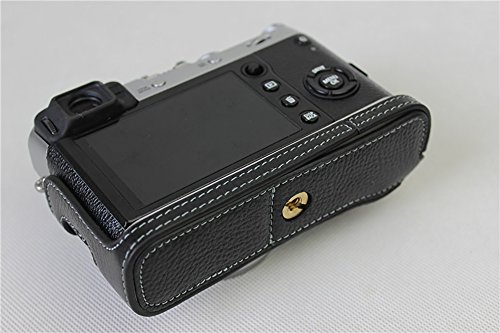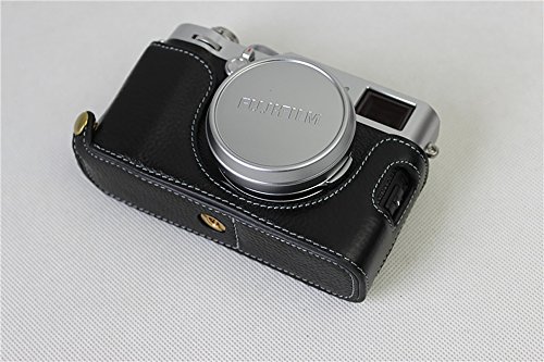 Bottom Opening Version Protective Real Leather Half Camera Case Bag for Fuji Fujifilm x100f with Hand Strap Black