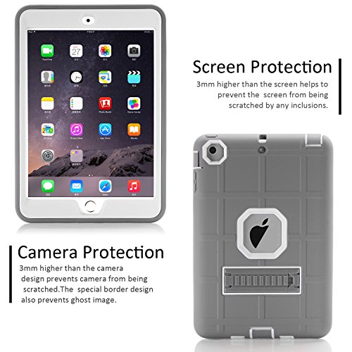 iPad mini Case,iPad mini 2 Case,iPad mini 3 Case,TOPSKY [Sincerity Series] [Kickstand Feature],Shock-Absorption High Impact Resistant Hybrid Armor Defender Case for iPad Mini 1,2,3,Glacier(WHITE/GREY)