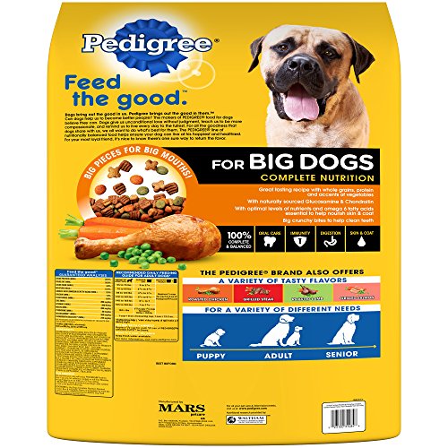 PEDIGREE Dry Dog Food for Big Dogs contains glucosamine and chondroitin. PEDIGREE Dry Dog Food contains the antioxidant, vitamin E, to help support a healthy immune system and calcium and phosphorus for strong bones.