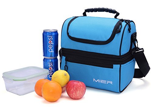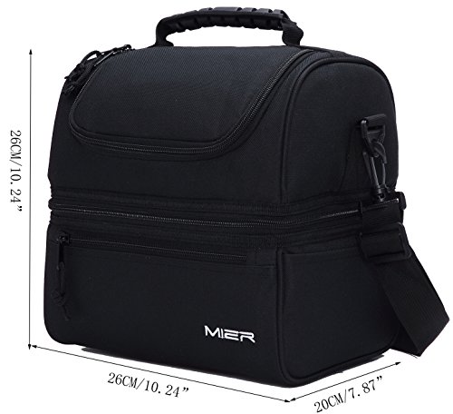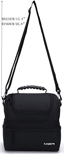 MIER reusable lunch box with a soft pu handle strap and a detachable shoulder strap for easily carry. Upper compartment easy to access through front opening with a 2-way dual zipper closure