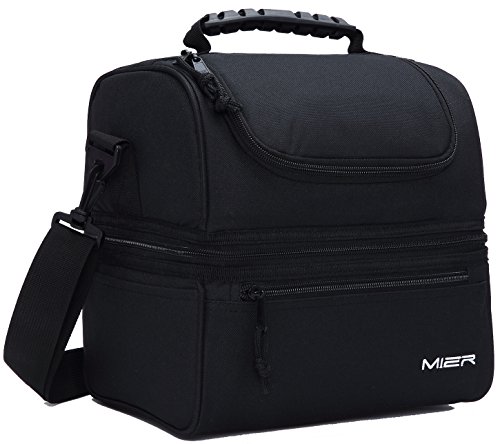MIER Adult Lunch Box Insulated Lunch Bag Large Cooler Tote Bag for Men, Women, Double Deck Cooler(Black)