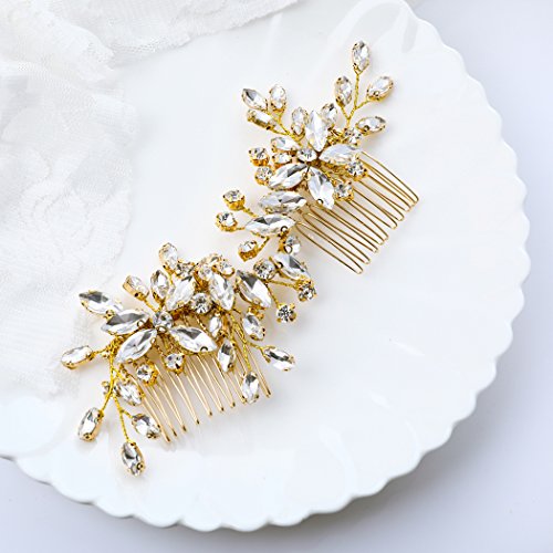 Jovono Womens Wedding Hair Combs Rhinestone Bridal Handmade Headpieces for Women and Girls