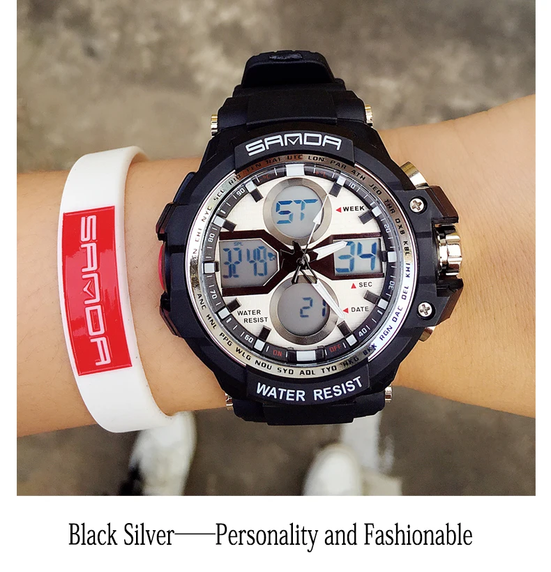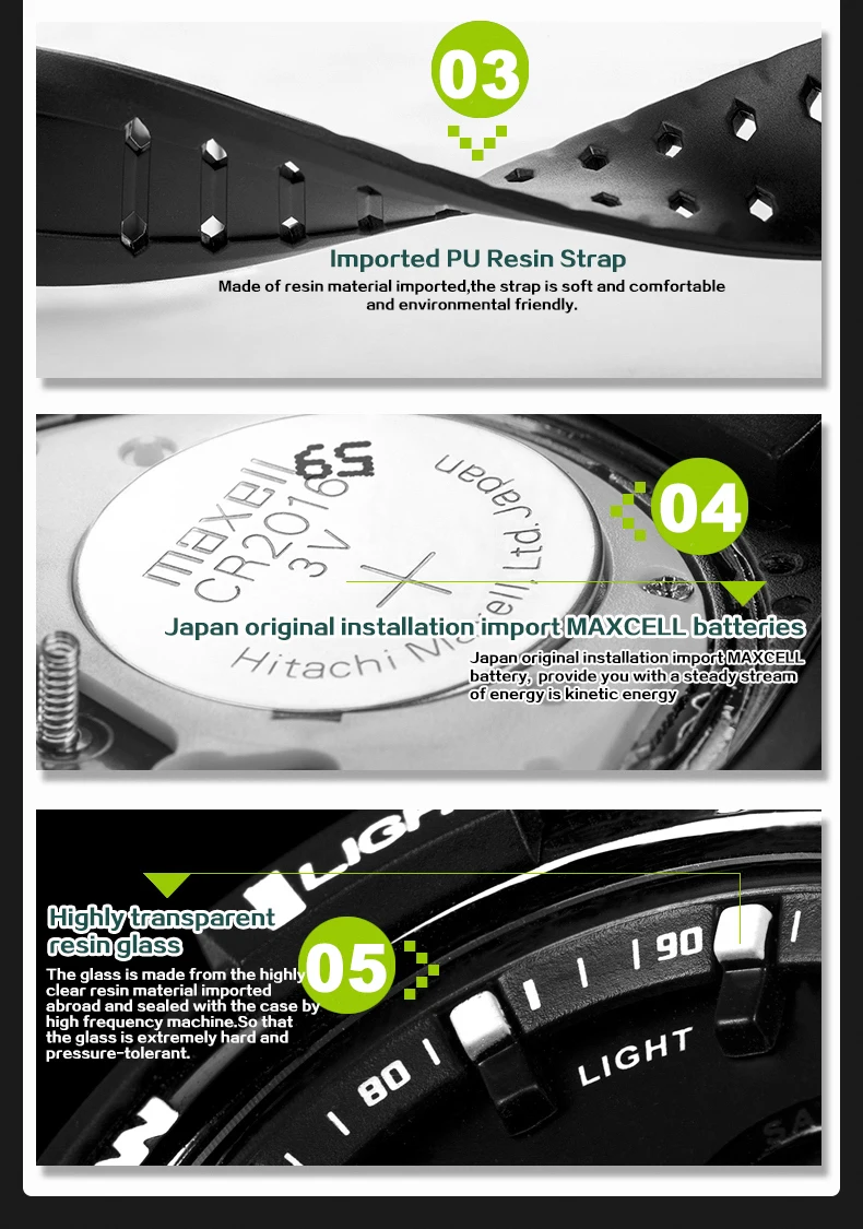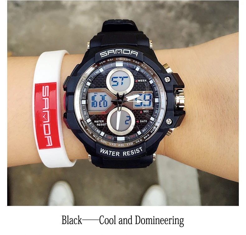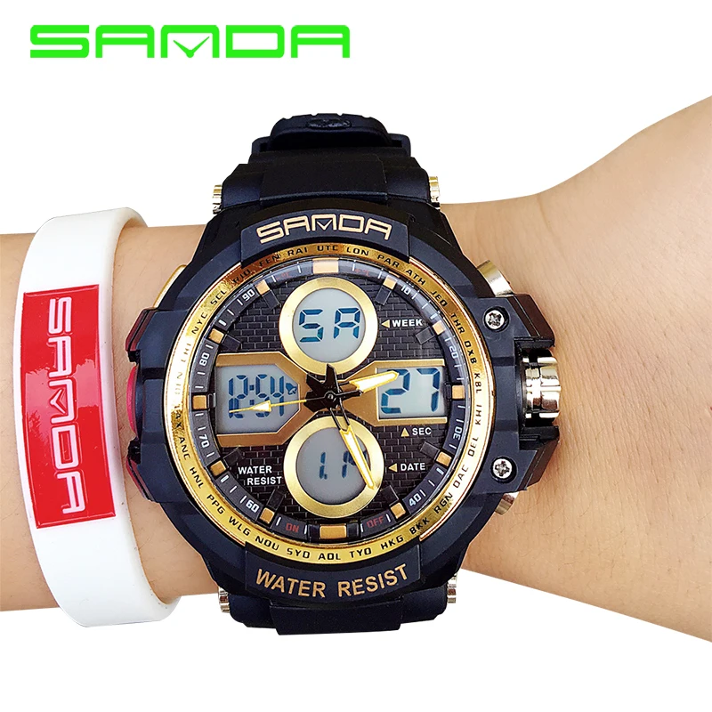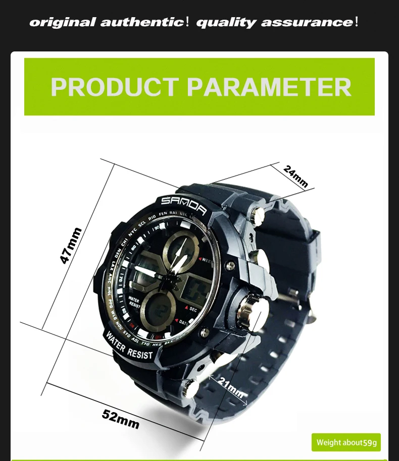 Feature:Water Resistant,LED display,Luminous,Stop Watch,Back Light,Shock Resistant,Chronograph,Auto Date,Alarm,Swim