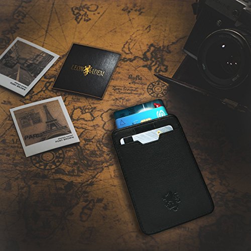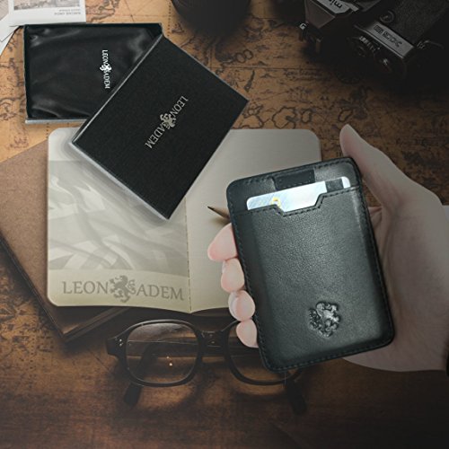 Binding : Apparel Product Description #x1F1EC;#x1F1E7;UNITED KINGDOM DESIGN (NEW RELAESE)The Leonadem is designed in the UK to keep the elegance and minimalism preliminary. The Leonadem minimalist front pocket wallet is made from soft, thin,durable, luxurious original Italian leather material. Made from 100% Natural Cow Leather. Wallets is packaged nicely in our cotton pouch and gift box. HIGH CAPACITY ULTRA THINLeonAdem's front pocket wallet is designed to accommodate 12 cards. 1-2 in the front pocket, up to 7 in the inner RFID protected pocket and up to 3 cards in the back pocket. The LeonAdem has a very subtle and elegant design.You can easily carry it in your back pocket. The slim wallet is ideal for carrying business cards, credit and debit cards, driver's license, cash etc.RFID BlockingRFID is a technology that enables people to pay by touching a card reader with a debit or credit card. Prevent RFID readers from scanning your cards and steal your personal information! FEATURE Material Option: 100% Natural Cow Leather Size: 3.9 x 2.8 x 0.2 inches Net Weight: 2.9 ounces Capacity: 12 Credit Card Accessories: Cotton Pouch, Gift Box Selling unit: 1pcs/lot Design From: United Kingdom, J.Lake What Are You Still Waiting For?Just click on the "ADD TO CART" button to get this sturdy and durable Business Wallet and add color to your life! 0
