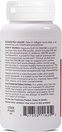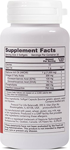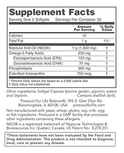 HOW IT WORKS: Neptune Krill Oil (NKO®) is known for its unique fatty acid (FA) profile, which includes EPA and DHA, plus phospholipids. In addition, NKO® naturally has Astaxanthin, a powerful free radical scavenger and immune-supporting carotenoid.* Clinical studies have shown that NKO® can help to support joint comfort, healthy blood lipid levels already within normal range, and may help to maintain healthy feminine balance.* The Phospholipid-bound forms of EPA and DHA from Krill Oil have also demonstrated exceptionally high bioavailability.* Neptune Krill Oil is manufactured under strict quality control standards. It is tested to be free of potentially harmful levels of contaminants (i.e. mercury, heavy metals, PCB's, dioxins, and other contaminants).Protocol For Life Balance® is an A-rated GMP manufacturer of pharmaceutical grade dietary supplements created for healthcare practitioners. Our product line is comprised of effective, science-based formulations intended to address common nutrient deficiencies and support healthy physiological function. These formulations are based on the latest advances in nutritional science and incorporate trademarked ingredients of the highest quality. Our serving sizes are based on doses used in clinical trials and other published data, and the ingredients used in our products have been tested for efficacy in clinical trials and laboratory studies.