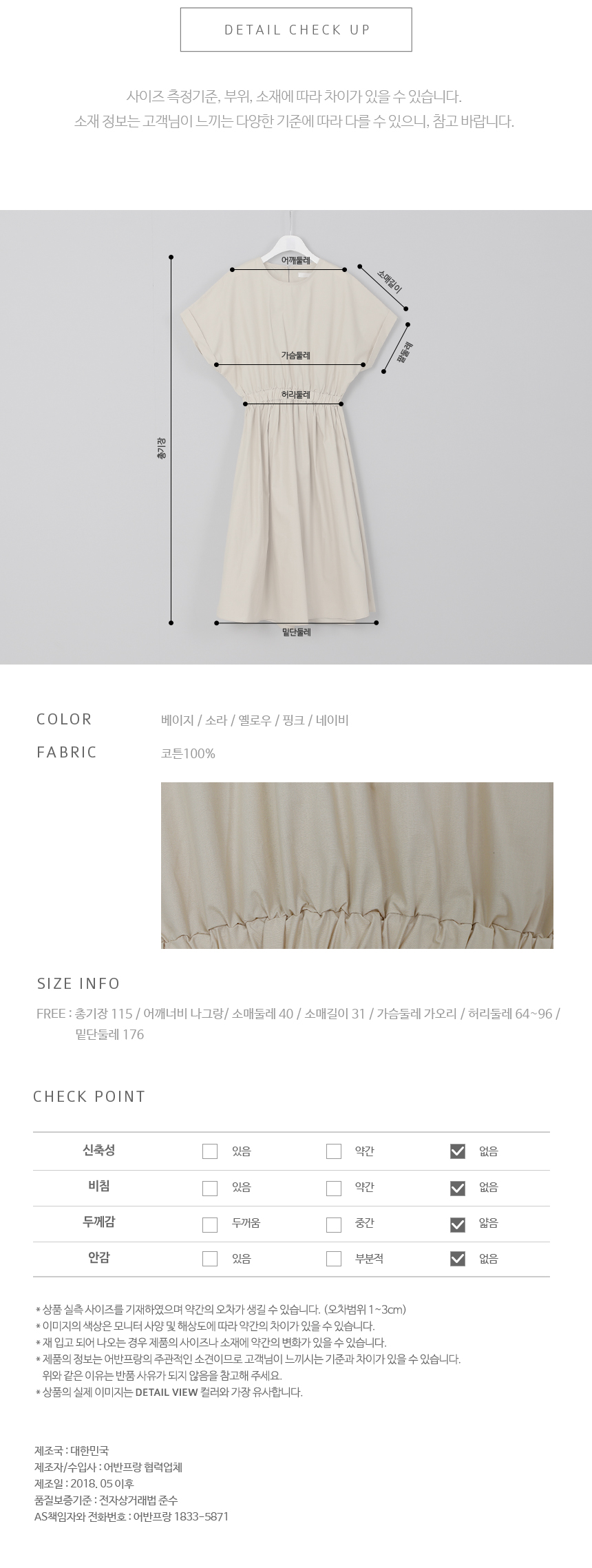부드럽게 늘어나는 허리밴딩으로 조임없이 편안한 스타일로 데일리룩부터 활용도 높은 원피스랍니다
