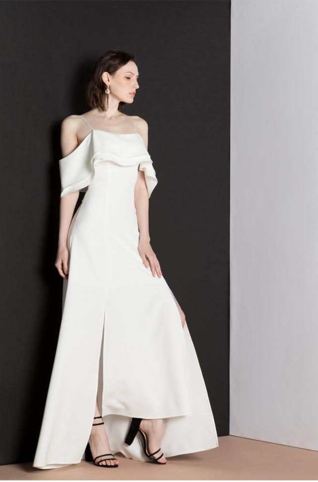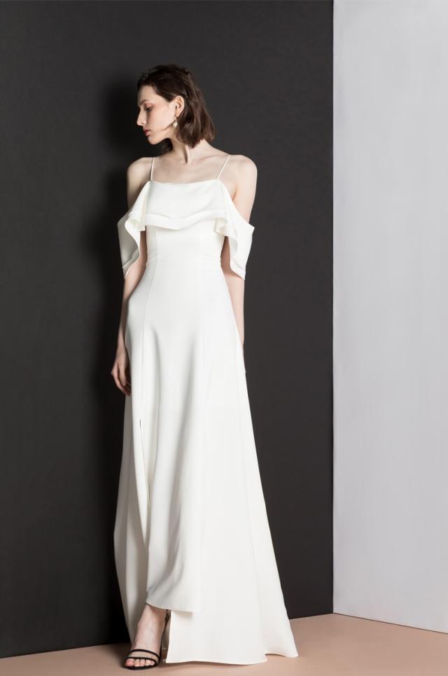 オフショルダー、ロングスカートの素敵なドレス。