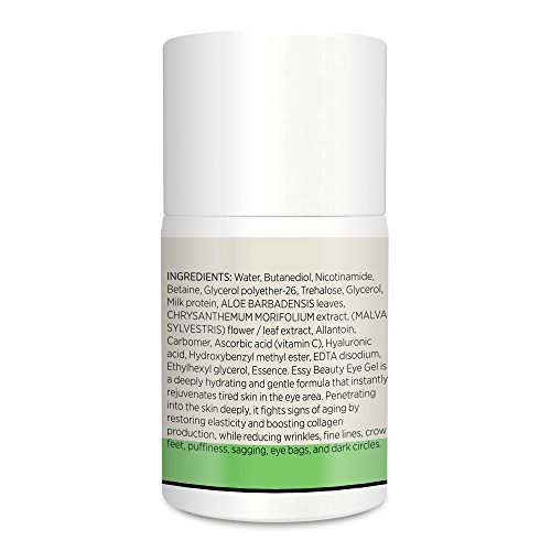 Essy Beauty Eye Gel is a deeply hydrating and gentle formula that instantly rejuvenates tired skin in the eye area. Penetrating into the skin deeply, it fights signs of aging by restoring elasticity and boosting collagen production, while reducing wrinkles, fine lines, crow's feet, puffiness, sagging, eye bags, and dark circles.
