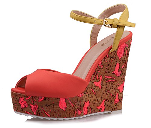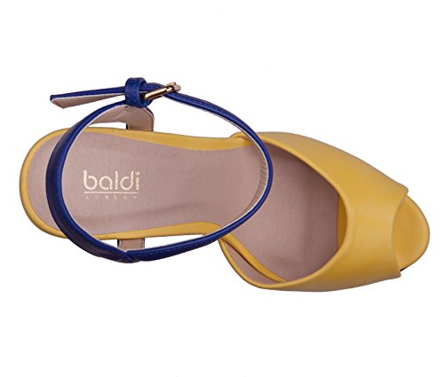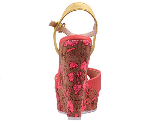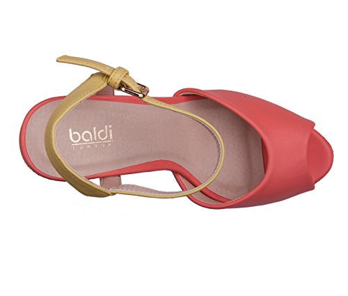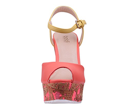 (BALDI)/Women's/Sandals/DIRECT FROM USA/BALDI Women's Shara Coral/Yellow Wedge High Heel Cork Platform Peep Toe Ankle Strap Buckle...