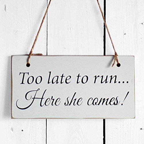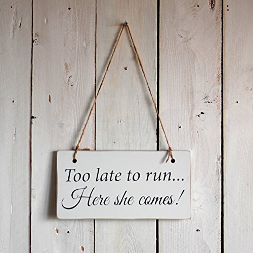 Too Late to Run Here She Comes - Kids Wedding Sign - Ring Bearer Sign - Flower Girl Sign - Funny Wedding Decorations - Black and White - 11x6