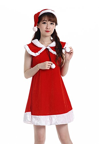 Feature : Materail:pleuche / Size: One Size Fit most S-XL size / Package Contents: 1 x dress, 1 x hat / Fashion tights and high elastic fabric. The sexy dress can show your beauty of curves. / Fun for holiday parties or surprising your secret Santa on Christmas