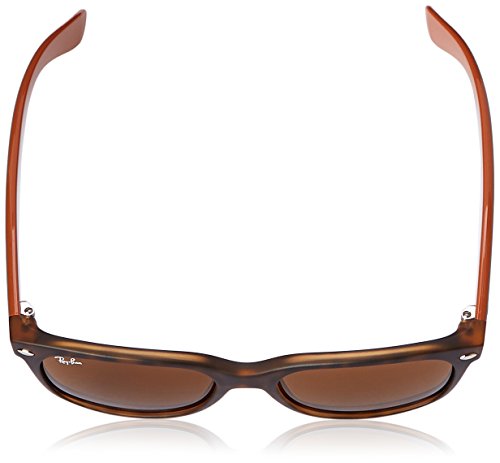 The updated classic Ray-Ban Wayfarer sunglasses have smaller lenses and a softer shape. Tortoiseshell frames and green lenses. Case and cleaning cloth included.