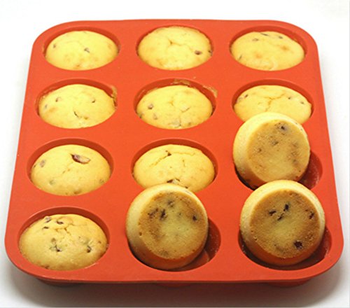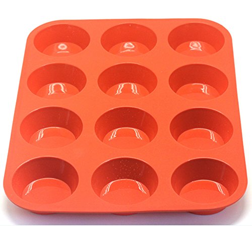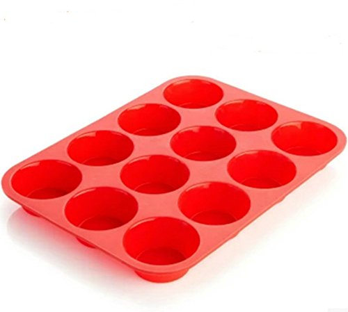 -. Title : HengYuan Large Non-stick Bakeware for Muffins, Cakes and Cupcakes - Silicone 12-Cup Muffin Pan / Baking Tray - Heat Resistant Tins Up to 450°F- Easy to Clean - Red