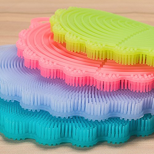 -. Feature : ✔ ANTIBACTERIAL DISH SCRUBBER. The scrubber is made of silicone, which is natrually antibacterial since it is not porous like sponges and cloths are. No more stinky bacteria-laden sponges! Please note that it does NOT absorb water! / ✔ EASY TO CLEAN AND QUICK DRY. The silicone dish scrubbers can rinse clean fairly well and dry throughly. They will be good as new when they get clean and dry, and they can easily be popped in the dishwasher or even boiled to get clean. / ✔ MULTI-PURPOSE KITCHEN HELPER. The scrubber is about 5 inches in diameter and fit in the hand nicely. One side has little brushes and the other has ridges. It can also be used as a coaster and pot holder due to its heat resistant feature. / ✔ SOFT, FLEXIABLE AND SCRATCH FREE. The brush with soft bristles provides a gentle scrub and will not cause scratches to your precious tableware. It is soft and flexible to get into glasses or corners of pans with ease. / ✔ COMES IN A PACK OF 4. These silicone dish scrubbers are super durable and can be used for a long time, yet still look new. It comes in a pack of 4, and each scrubber has a hanging loop for drying or storage.