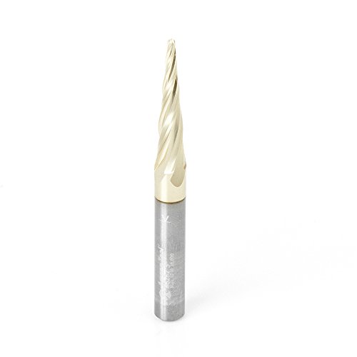 Amana Tool 46282 CNC 2D and 3D Carving 5.4 Deg Tapered Angle Ball Nose x 1/16 D x 1/32 R x 1 CH x 1/4 SHK x 3 Inch Long x 4 Flute SC ZrN Coated Router Bit