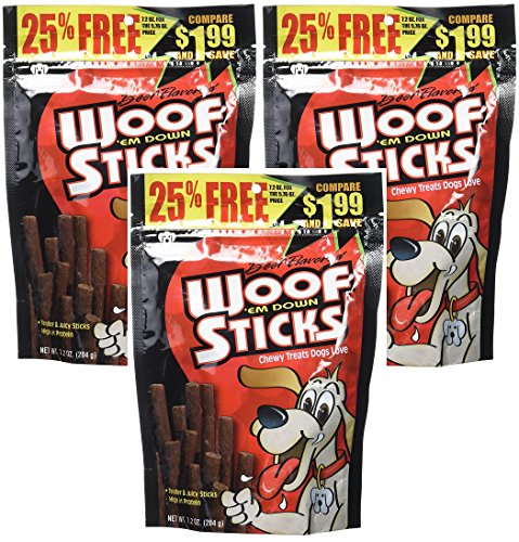 -. Feature : (3 Pack) PRO PAC Beef Flavored Woof 'em Down Sticks Dog Treats, 7.2-Ounce Bags / Crude Protein, not less than 270-percent / PRO PAC Beef Flavored Woof 'em Down Sticks have the flavor of beef in every bite / Packed in a convenient, resealable zip pouch to seal in the freshness and flavor