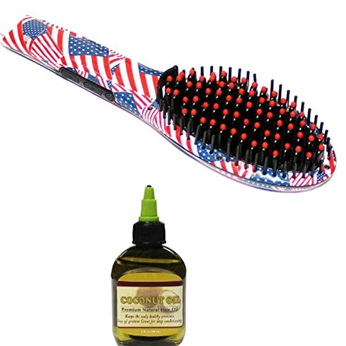 PU Beauty Pure Acoustics Top Quality Women's Hair Straightening Brush with Coconut Oil, American Flag