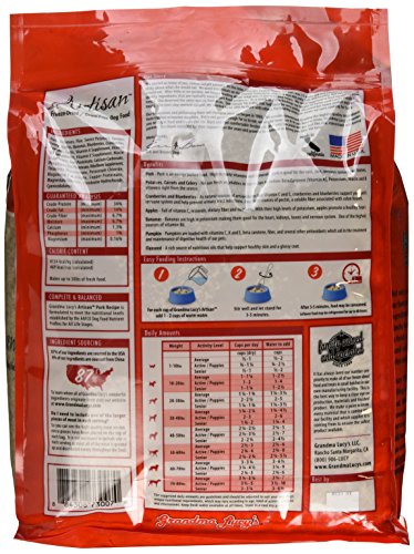 -. Feature : 10lbs bag contains USDA Pork, Potatoes, Flax, Sweet Potatoes, Carrots, Celery, Apples, Bananas, Blueberries, Cranberries, Pumpkin, Garlic, Vitamins and Minerals / 87% of our ingredients are sourced in the USA with NO ingredients from China / Made in our very own Family Owned and Operated Freeze Drying Facility in Southern California / For each cup of Grandma Lucy's add 1-2 cups of warm water, mix and serve, Ready in 3 minutes