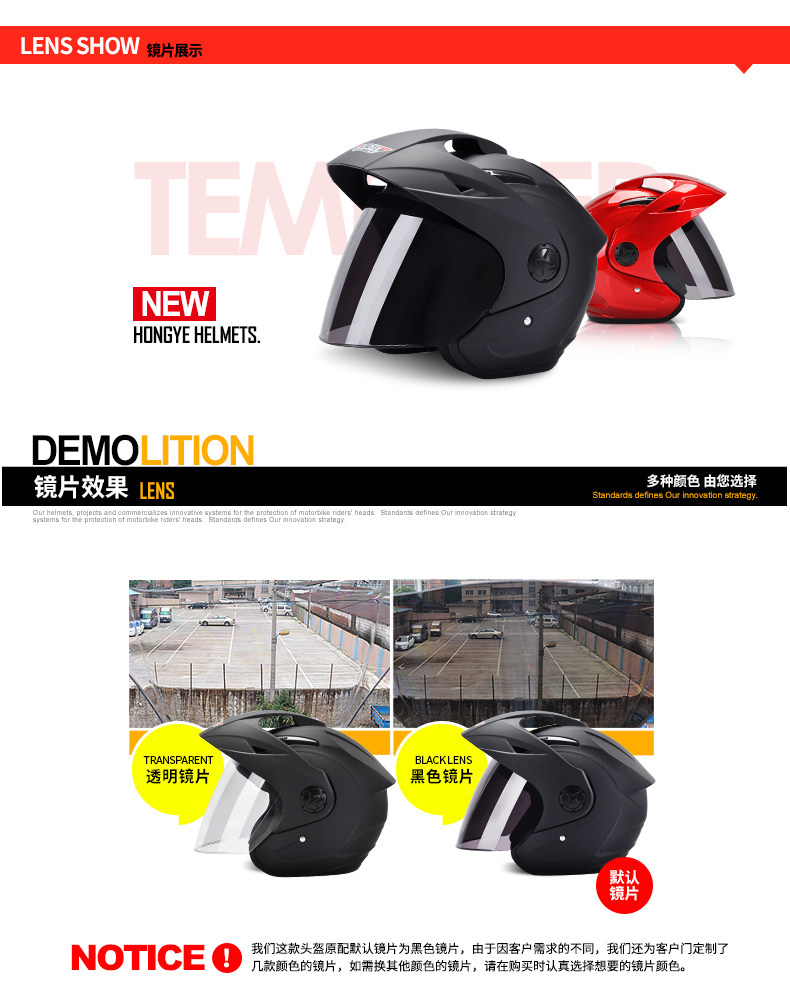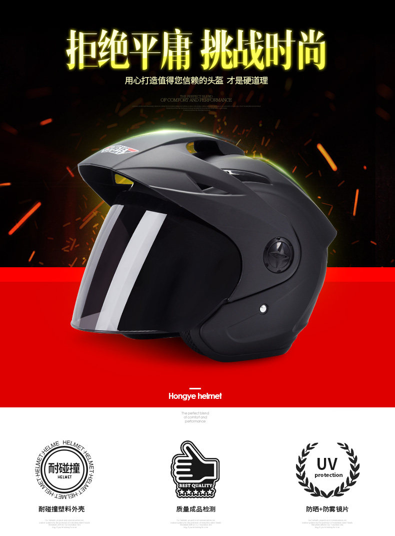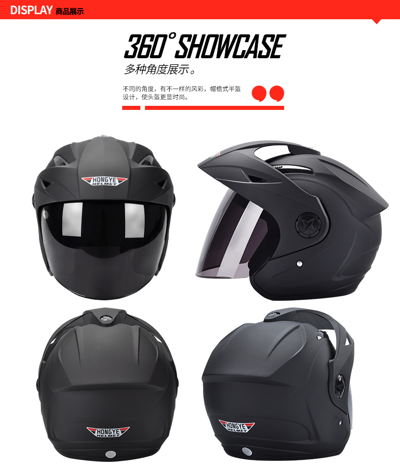 产品参数:Product parameters:品牌: 鸿业Brand: Hongye型号: H618Model: H618款式: 半盔Style: half外观造型: 半覆式Appearance: half cover适用季节: 四季Season: Season尺码: 均码Size: Free