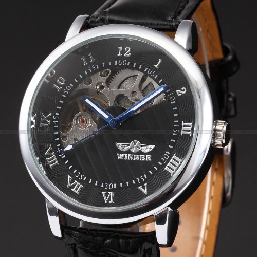 -. Title : AMPM24 新品 スケルトンホロー メンズ 手巻き機械式 ブラック レザーバンド リストウォッチ PMW065