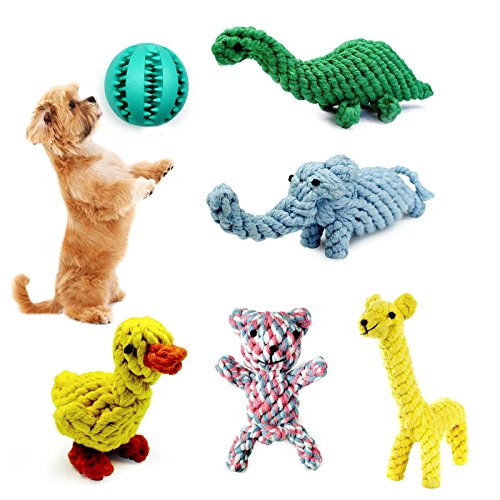 Package Included: 5x dog rope toys(Panda giraffe elephant dinosaur duck) 1 x dog chew ball.