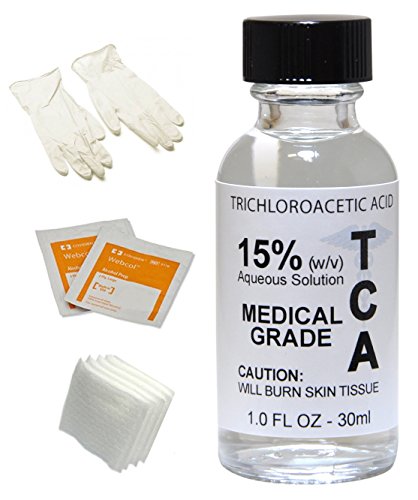 -. Feature : TCA (Trichloroacetic Acid), ACS - Tested for strict Purity by the American Chemical Society / Dramatically Reverse the Signs of Aging - The Most Powerful Exfoliator - Medium Chemical Peel - unbuffered, lower pH for better and deeper peel - Higher Concentrations maybe diluted in Distilled Water / Most Common Percentages for Facial Skin Peel are between (8-35%). The stronger concentrations are commonly used to remove, moles, warts, skin tags and tattoo's / INCLUDED with 15% TCA Peel: 2 Alcohol Prep Pads, Gloves, Cotton Pads & Instructions