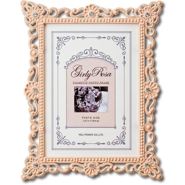 繊細なレース模様とローズを組み合わせた、高級感あふれるフォトフレームです。 製造国:中国 素材・材質:亜鉛合金、ガラス、アクリル 商品サイズ:W18×H23×D1.5cm 重量:約0.4kg 仕様:卓上用(縦横両用)フォトサイズ:キャビネサイズ(127×178mm)1枚 ※サプライヤー直送品 ご注文後3~4営業日後の出荷となります【商品名】ユーパワー Girly Rosa ガーリーロザ パルメット フォトフレーム キャビネサイズ(ライトピンク) GR-03023