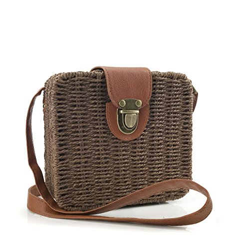 -. Brand : Hoxis -. Color : Brown -. Department : womens -. Feature : Made with High-quality Straw and Pu Leather / Push lock Closure,Adjustable Shoulder Strap. / Proximate Dimensions:7.3 L x 6.5 H x 3.2 W (inch); Fit for IPhone Plus / Made by Hoxis -. PackageQuantity : 1 -. ProductGroup : Shoes -. ProductTypeName : HANDBAG -. Size : Medium -. Title : Hoxis Retro Straw Portable Small Box Woven Womens Cross Body Bag Shoulder Messenger Satchel
