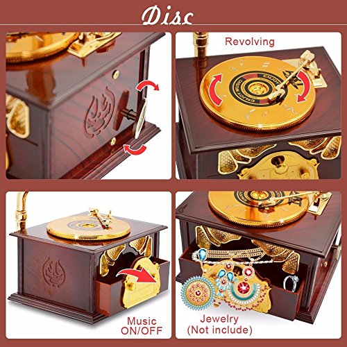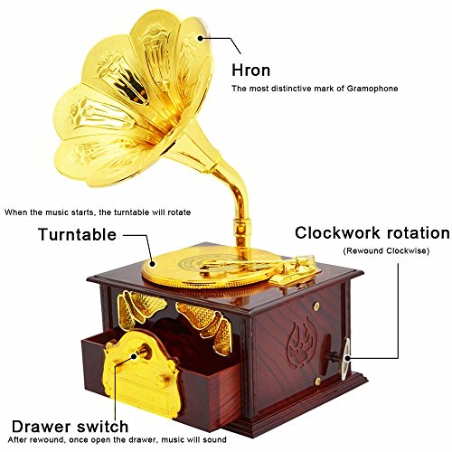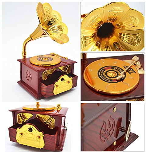 Anlydia Vintage Phonograph Design Trinket Music Box Gift For Christmas