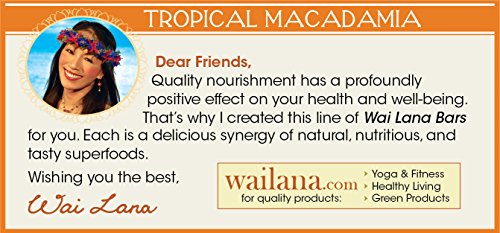 Delicious and Nutritious! For those wanting to indulge in something sweet without the added sugar, Wai Lana offers her delicious, gluten-free nutritious bars. Free from trans fats, hydrogenated oils and cholesterol, these dairy free bars are made with nuts and fruit for healthy snacking. They are suitable for vegans and vegetarians. Naturally Sweet No Added Sugars Gluten Free Vegan Dairy Free GMO Free Rich in Raw Fruit Nuts No Trans Fat Cholesterol Free Zero Hydrogenated Oil No Artificial Colors Flavors No Preservatives Antioxidant-Rich Low Sodium