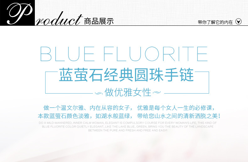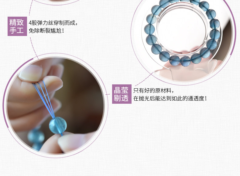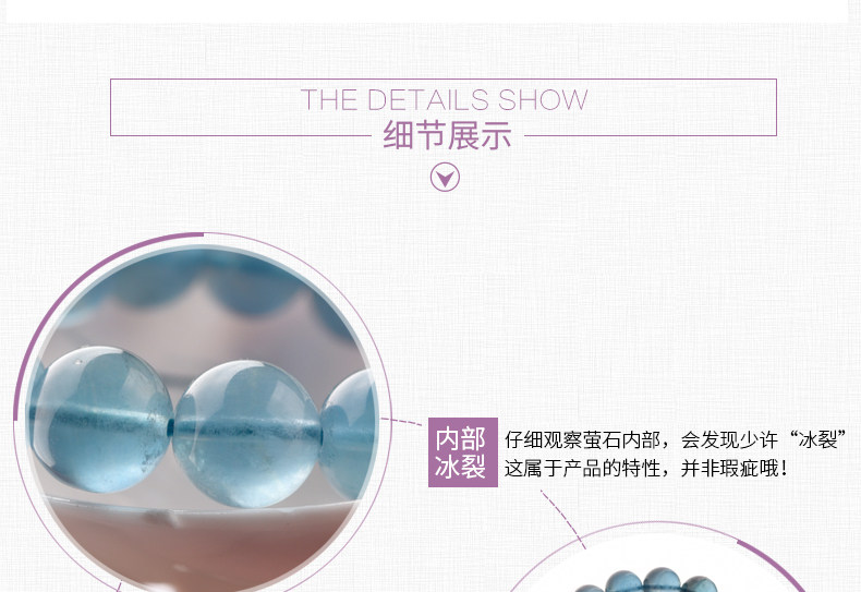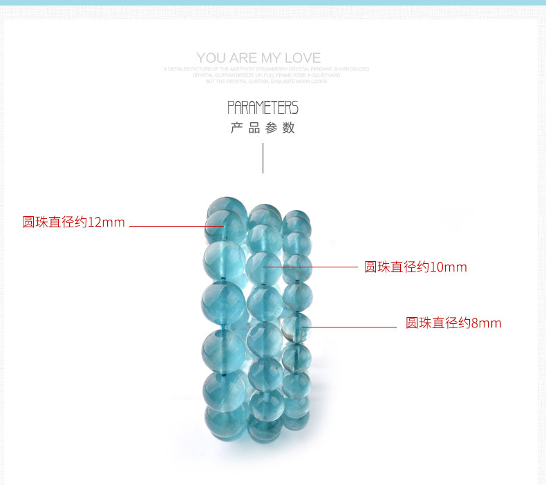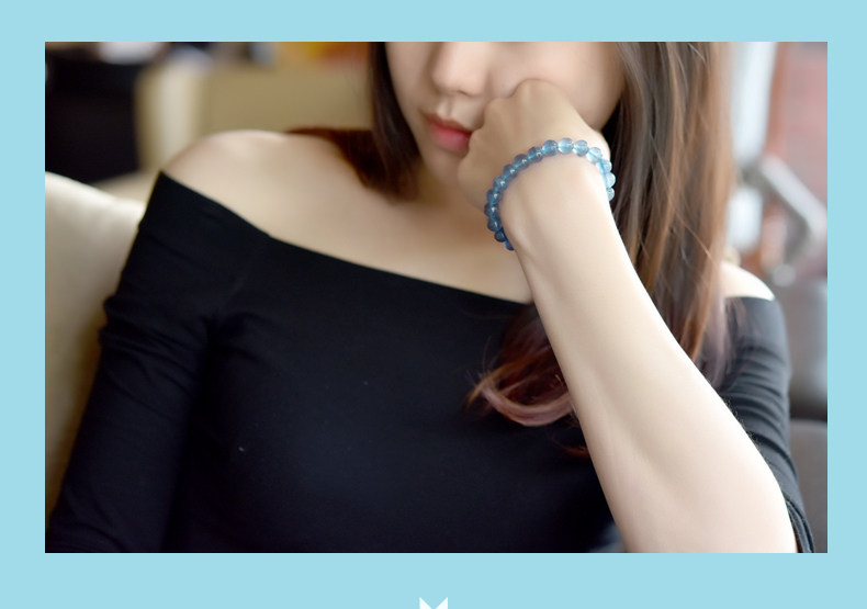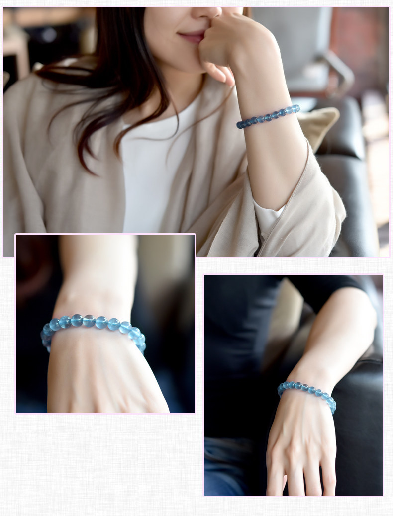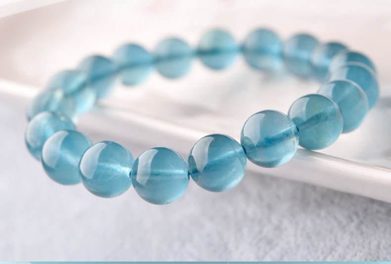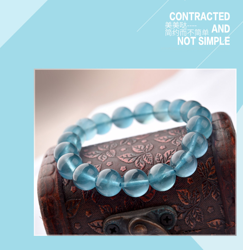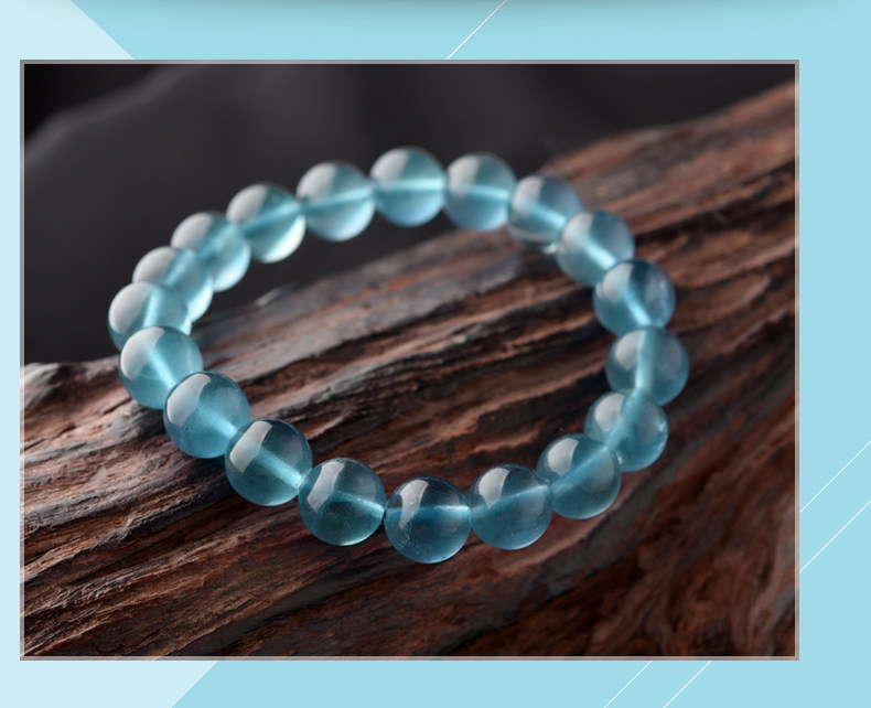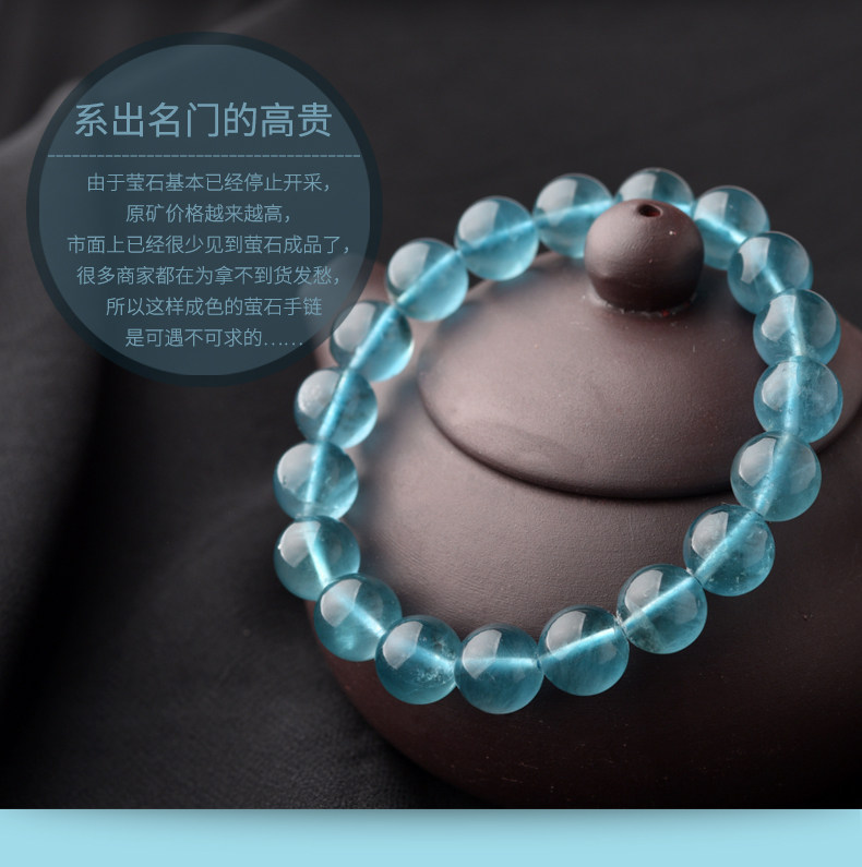 灵菲蓝萤石手链 冰透蓝萤石单圈佛珠手串女水晶饰品礼物 晶体通透
