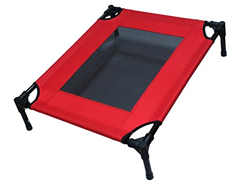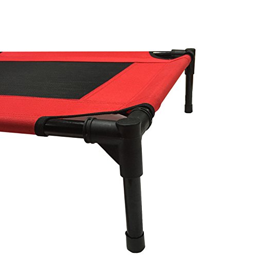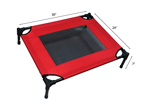 Tenive Elevated Pet Sleeping Bed Size:30"Lx24"Wx 7"H Tenive Elevated Dog Sleeping Cot is great for your dog sleeping/rest indoor or outdoor without on ground. Breathable mesh fabric keeps your pet ventilated by allowing air to flow and keeps away mildew and mold. Elevated pet 7 inches high off the ground to protect your dog away from dirty and bugs. Lightweight yet strong, powder-coated tubular steel frame which holds the mess fabric securely in place. The four stable feet help ensure safety and non-tipping placement and also assembles quickly and easily without any tools. Tenive Pet Bed also makes a handy take-along option when traveling, hiking or camping with your little buddy Specification: Color:Red Size:30"Lx24"Wx 7"H Hold up weight: 66LBS Package including: 1 Breathable mesh bedding fabric 8 Straight tubes 4 Connecting pipe 1 Instruction Manual 1 storage /carrying bag