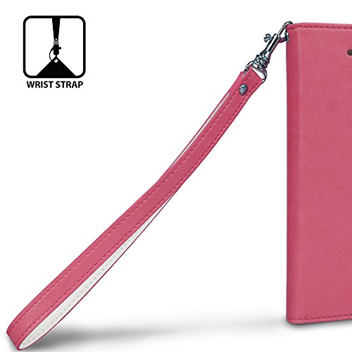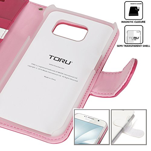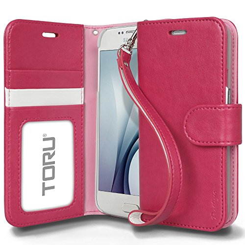 Galaxy S6 Case, TORU [Prestizio Wallet] S6 Wallet Case with [CARD SLOT][ID HOLDER][KICKSTAND][WRIST STRAP] - Premium Wristlet Leather Flip Cover for Samsung Galaxy S 6 - Hot Pink