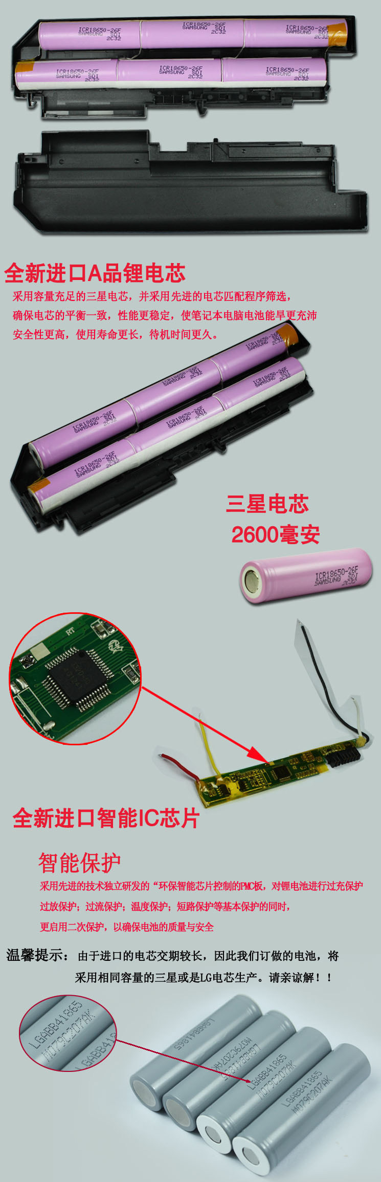 我们的电池都是通过原装机装配过,没有问题才出货的,请买家放心使用。