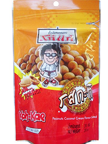 -. Feature : Peanut Coconut Cream Flavor Coated Snacks. / Healthy Snack. / Delicious snack for splitting with the whole family. / Ready to eat as peanut snacks at any time. / Roasted peanuts encased in crunchy coconut-flavoured shell. Koh-Kae has been Thailand's favorite peanut snack for over 30 years.