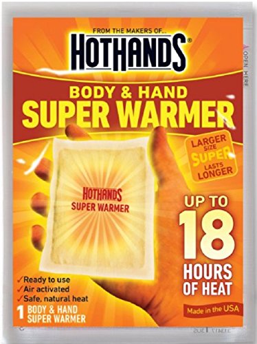 -. Brand : HotHands -. Feature : Ready to use / Air-Activated / Safe, natural heat / Up to 18 hours of heat / Made in the USA -. IsAutographed : 0 -. IsMemorabilia : 0 -. ProductGroup : Sports -. ProductTypeName : OUTDOOR_RECREATION_PRODUCT -. Title : HotHands Body & Hand Super Warmer (80 count)