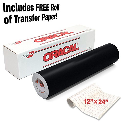 ORACAL Matte Black Adhesive Craft Vinyl 12" x 6ft for Cameo, Cricut & Silhouette Including Free Roll of VViViD Clear Transfer Paper