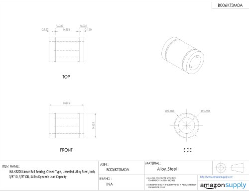 INA KBZ06 Linear Ball Bearing, Closed Type, Unsealed, Alloy Steel, Inch, 3/8" ID, 5/8" OD, 54 lbs Dynamic Load Capacity