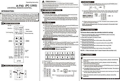 Pre-programmed codes are compatible with most brands. Simply press [SET] and [1] for sony brand TV , [SET] and [2] for samsung brand TV