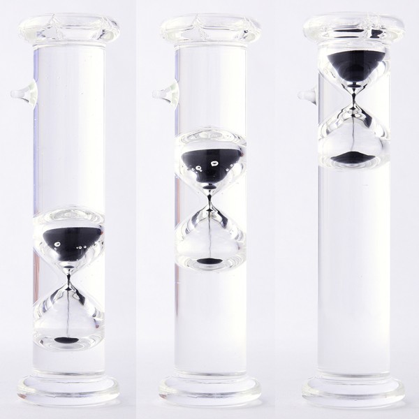 ガラス筒の中に浮かぶ不思議な砂時計。反転させれば液体内部の砂時計がゆっくりと筒内を移動します。もちろん砂時計の中の砂もゆっくりと落ちながら。優雅さも感じられ、インテリア性と実用性を兼ね備えたユニークで透明感のある美しい砂時計インテリアです。■商品サイズ:H200×W55×D55mm