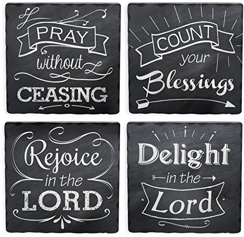 Angelstar 13424 Chalkboard Square 4 Piece Coaster Set, 4", Multicolor