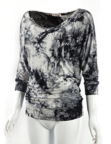 -. Title : Bepei Women Casual 3/4 Sleeve Side Shirring Boat Neck Drape Top