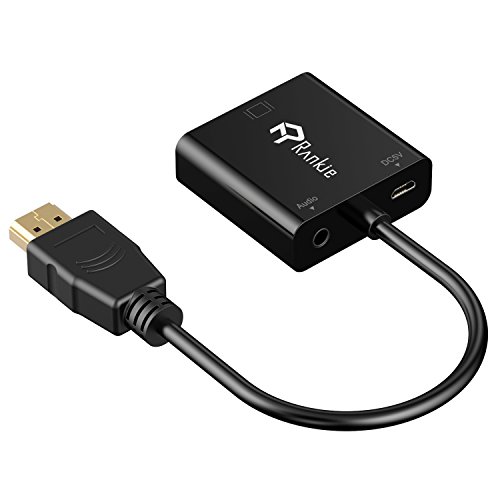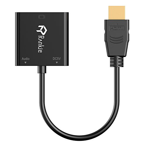 HDMI to VGA, 1080P with Audio Port, Rankie Gold-Plated Active HDMI HDTV to VGA Adapter Converter Male to Female with Micro USB & 3.5mm Audio Port Cable - R1150