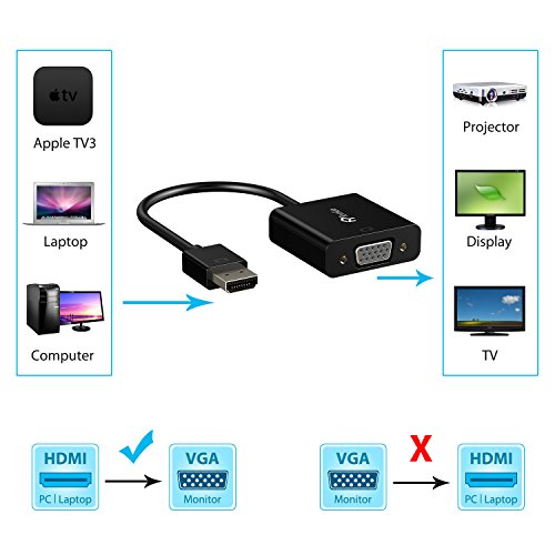The lightweight and portable HDMI to VGA adapter connects an HDMI compatible device to a monitor or projector with VGA port; A VGA cable (sold separately) is required