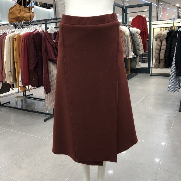 롱한길이감의 두깨감있는 에이라인의 스커트에요,앞부분 절개선과 트임이특징이에요.