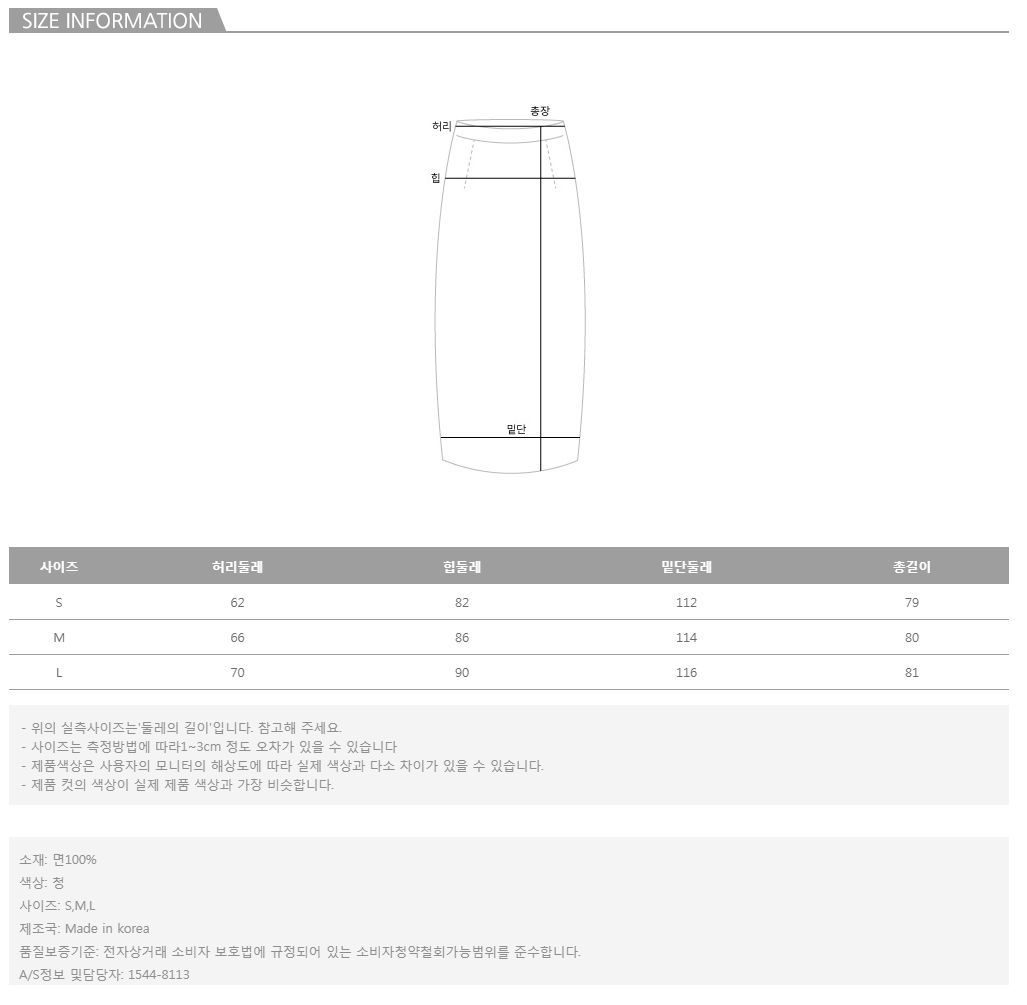 모델의 착용 컬러/사이즈는 청/S 입니다.
