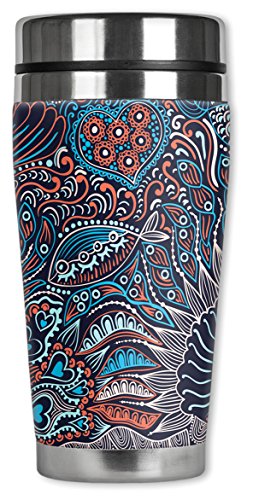 Mugzie 859-MAX "Abstract Fishes" Stainless Steel Travel Mug with Insulated Wetsuit Cover, 20 oz, Black